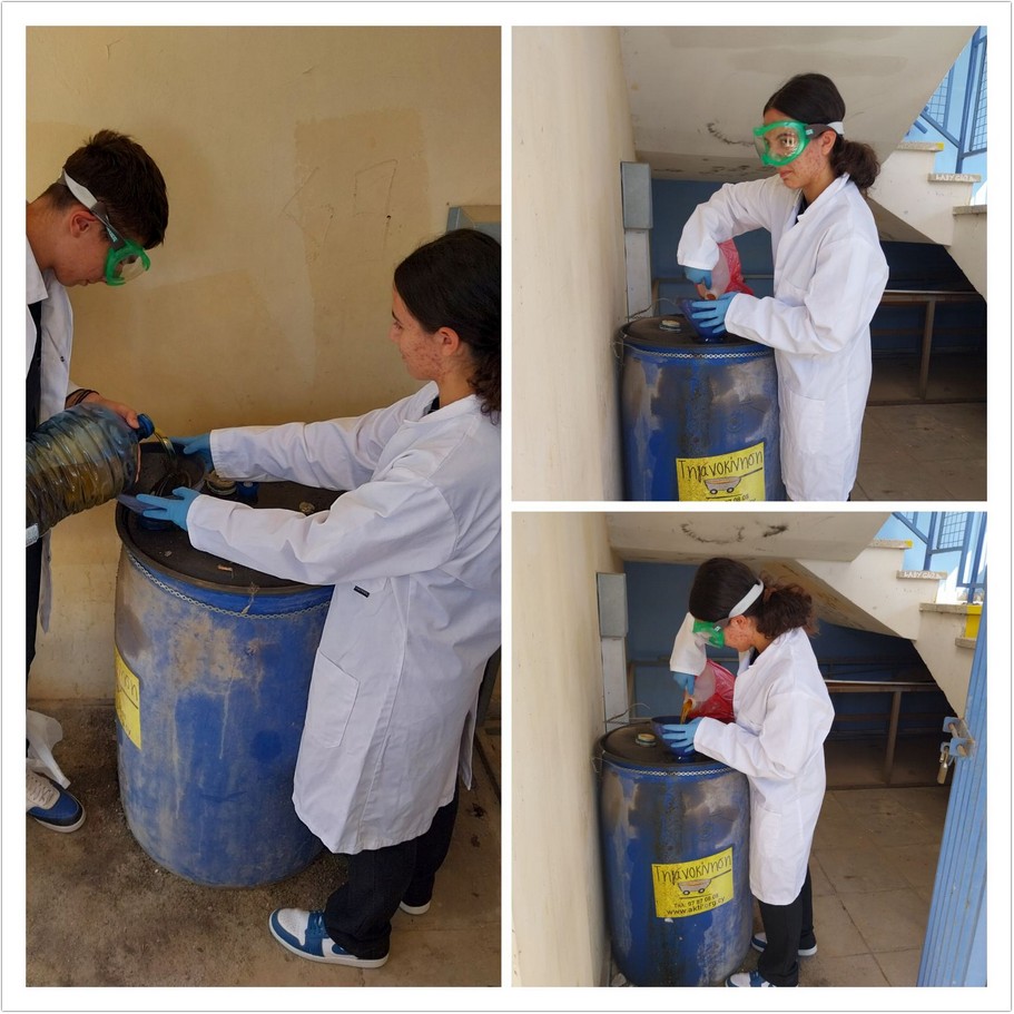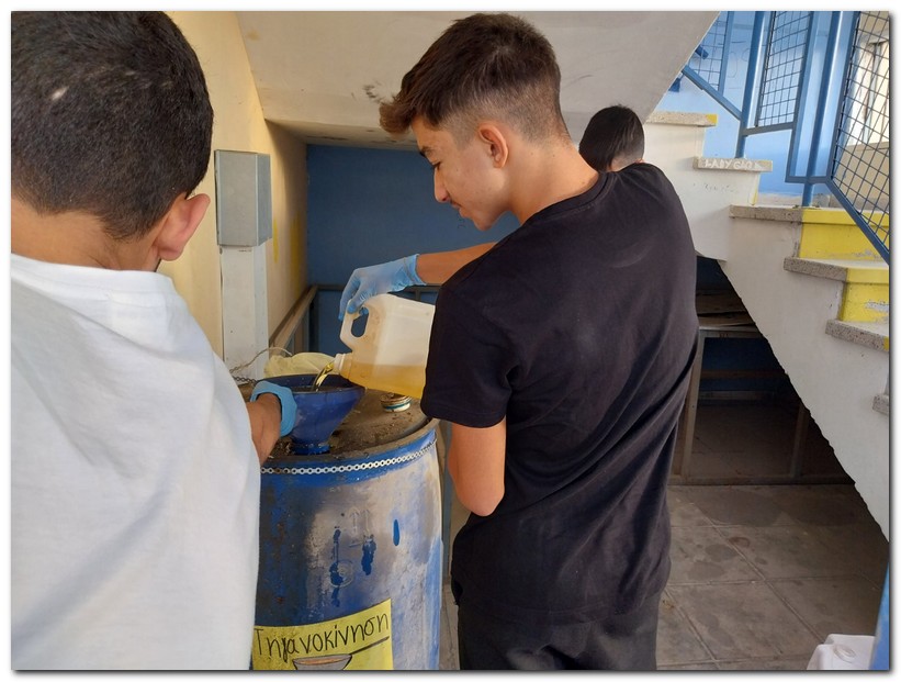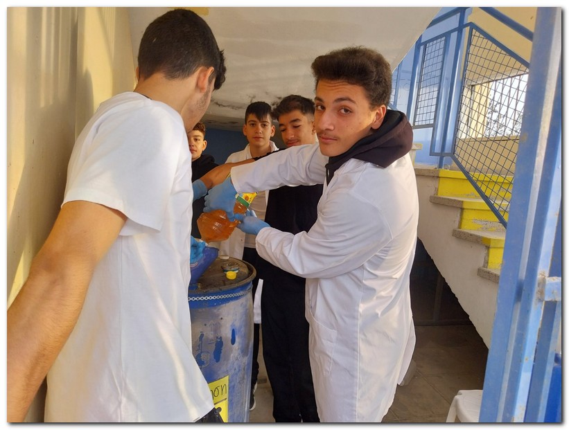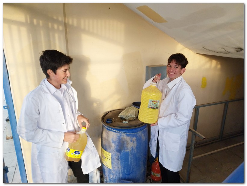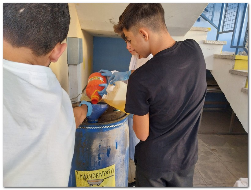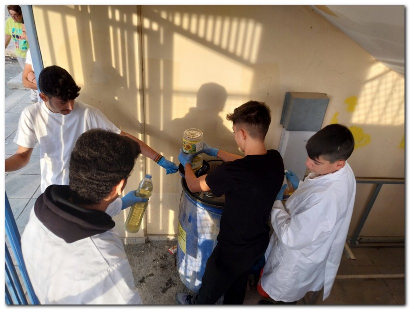 Μια ομάδα παιδιών από τα τμήματα Α΄3 και Α΄4 είχαν την ευκαιρία να συμμετέχουν ενεργά στην ενημερωτική αυτή δραστηριότητα, να εμπλακούν σε ζωηρή συζήτηση σχετικά με τις αρχές της κυκλικής οικονομίας, να πειραματιστούν στο πλαίσιο των δοκιμασιών του Καραβανιού της Τηγανοκίνησης, να μάθουν περισσότερα για την αειφόρο διάστασή της και να ενθαρρυνθούν ώστε να συμμετέχουν στο αντίστοιχο πρόγραμμα, το οποίο ήδη εφαρμόζεται από το εργαστήριο Βιολογίας του σχολείου μας για ακόμη μια χρονιά!