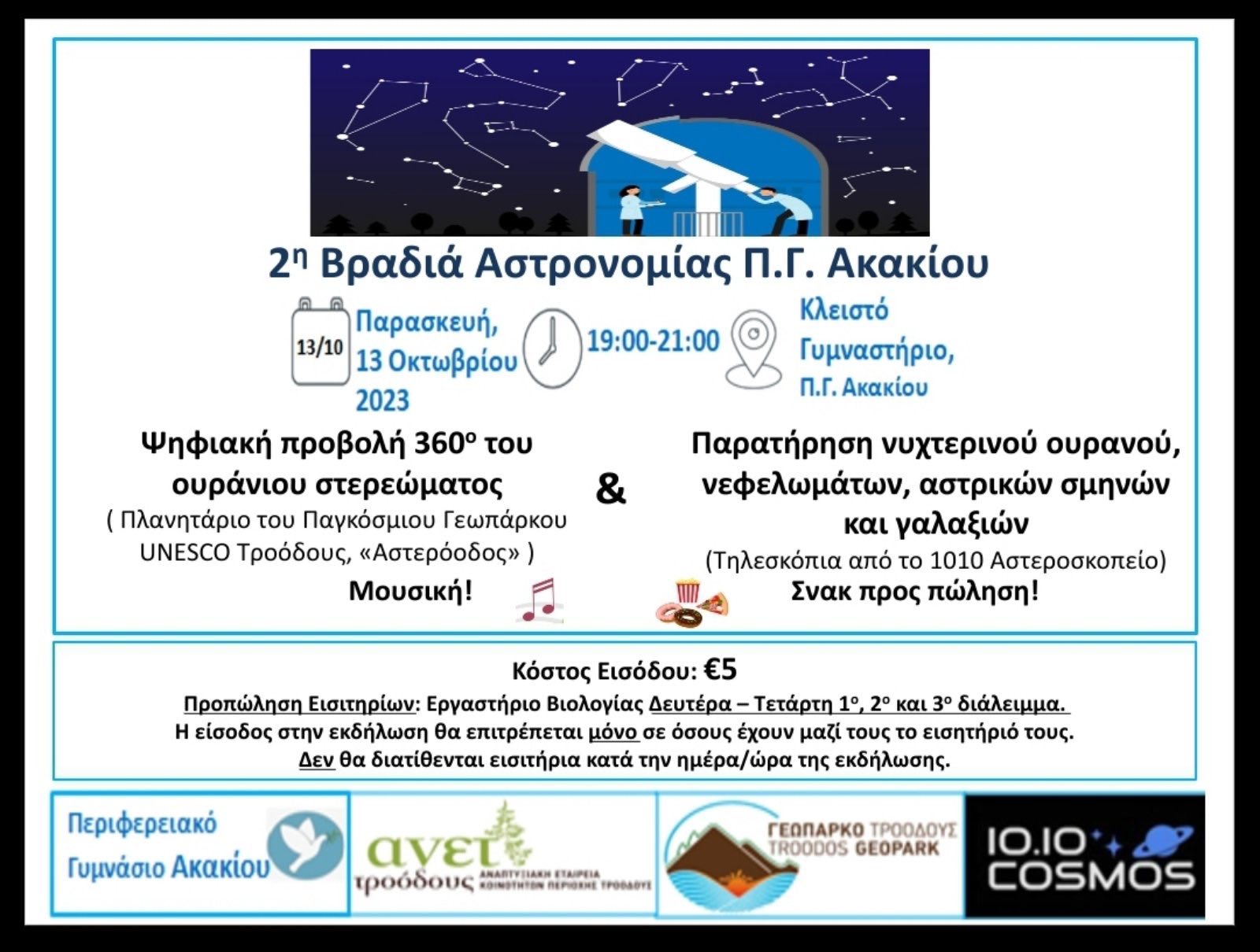 | Πρόσκληση - 2η Βραδιά Αστρονομίας Περιφερειακού Γυμνασίου Ακακίου |